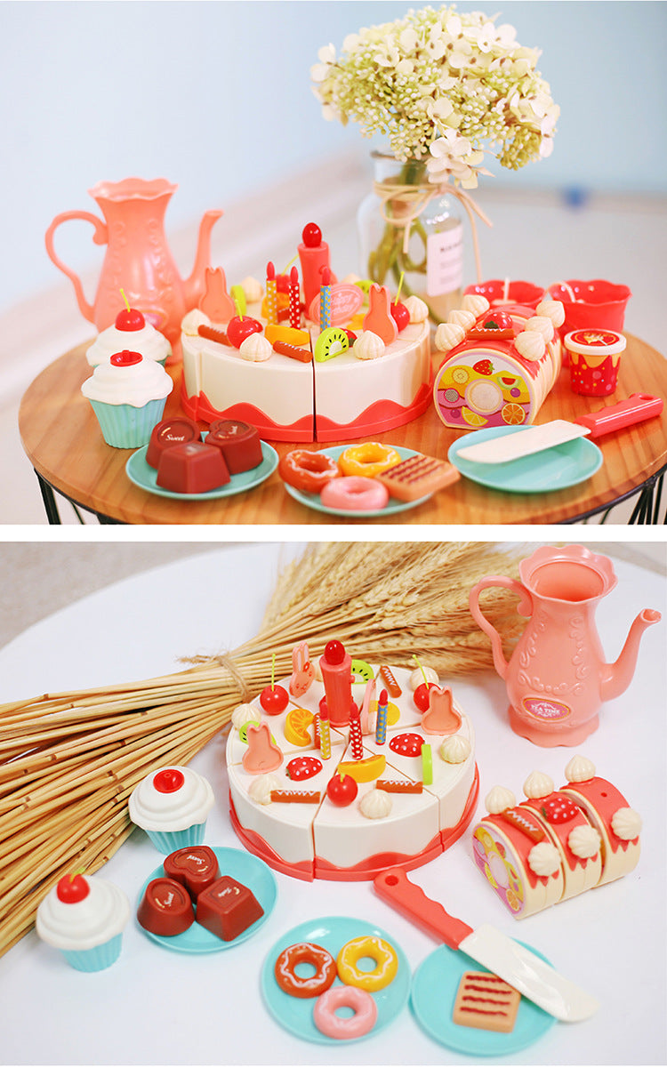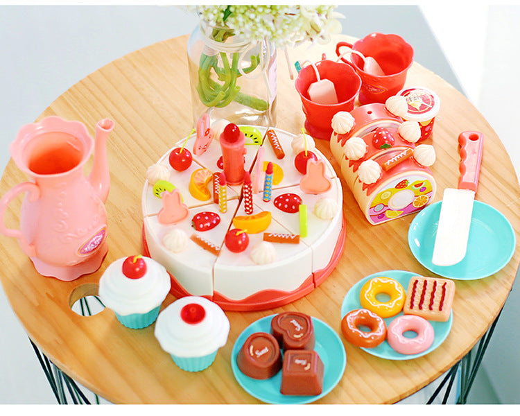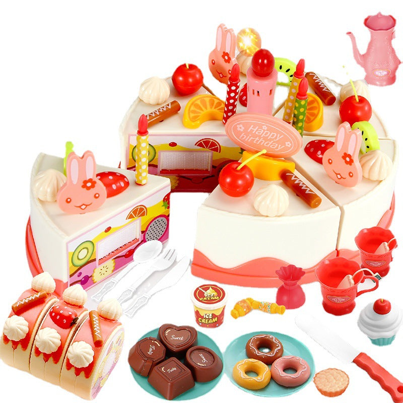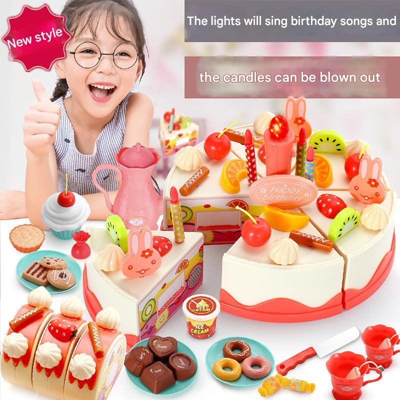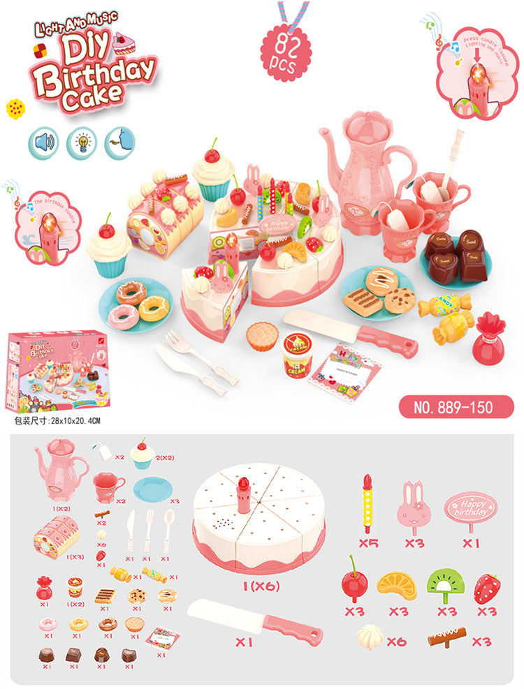 Kids 82-Piece Electric Light & Sound Sensory DIY Fruit Cutting Birthday Cake Toy Playset