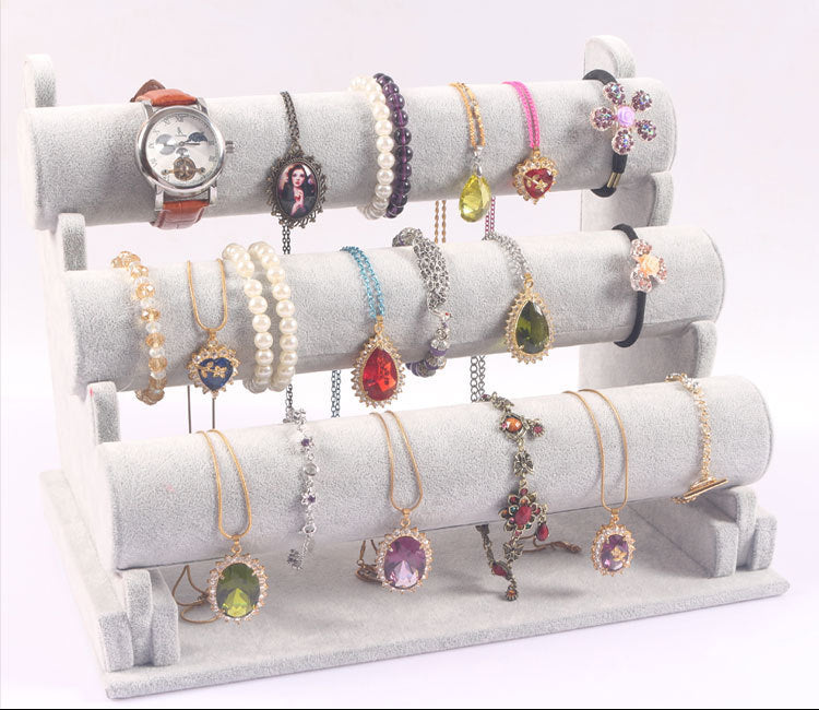 Deluxe Velvet 3-Tier Bracelet and Watch Display Stand - Elegant Jewelry Organizer for Retail and Home Use