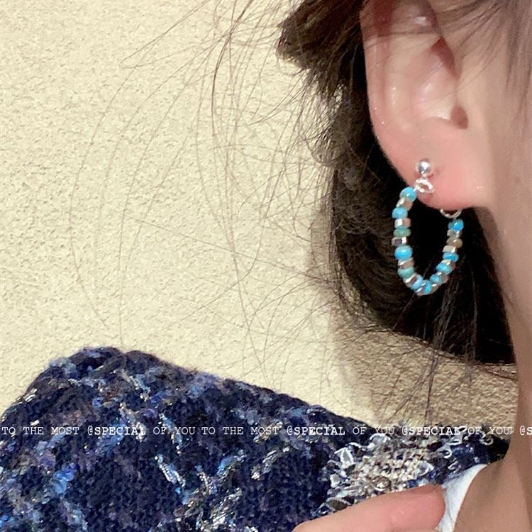 Dopamine Delight: Colorful Beaded Silver Stud Earrings for Women - Unique Geometric Design for Effortless Style