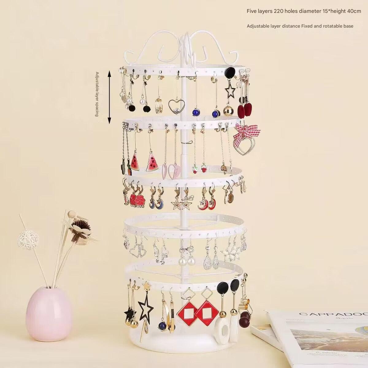 Elegant 5-Tier Rotating Metal Earring Organizer with 220 Holes - Minimalist Nordic Style Jewelry Display Stand for Earrings and Accessories