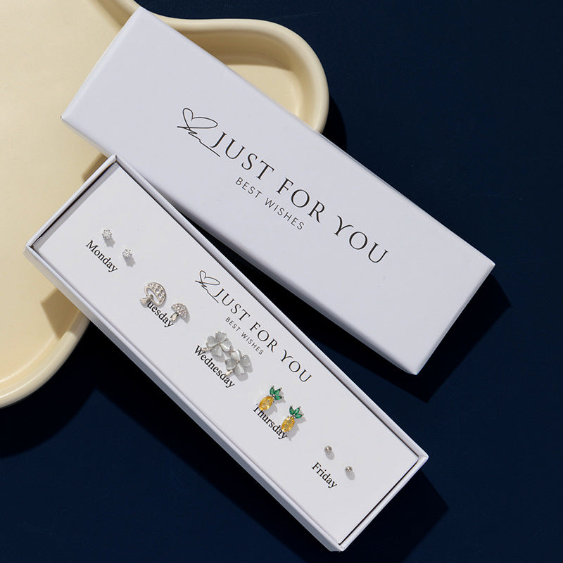 Elegant S925 Silver Drop Earrings Set - 10-Piece Heart & Flower Design Gift Box for Women