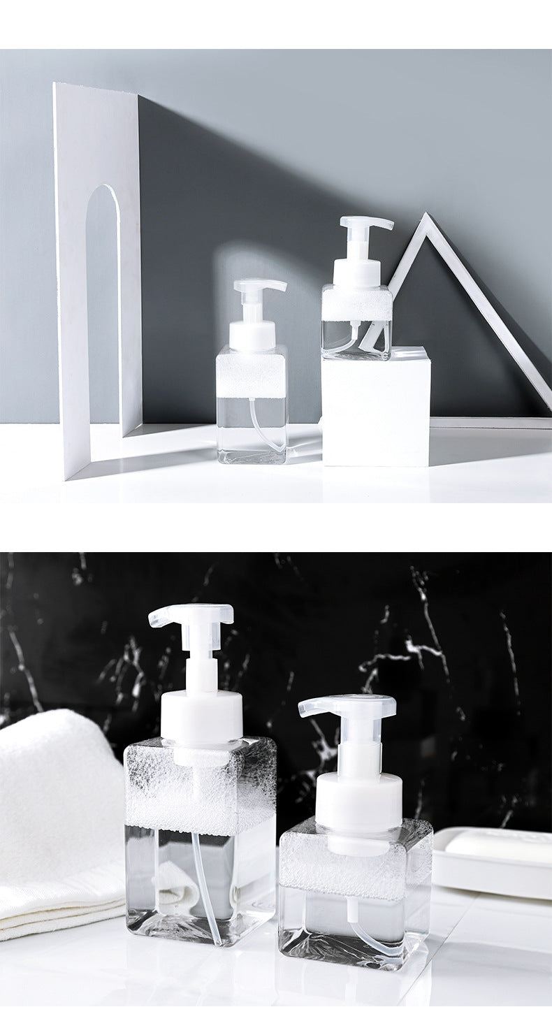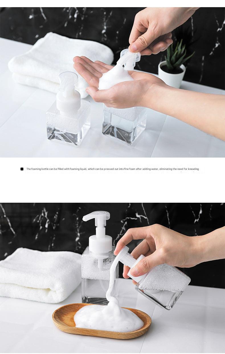 Our manual press foaming dispenser bottles are designed to make your daily hygiene and cleansing routines easier. The pump converts the liquid into foam, reducing the product used per wash and ensuring a more sustainable consumption. The transparent material allows you to quickly see what's inside and check the remaining quantity. With two size options, these bottles meet both individual and family needs. They are perfect for bathrooms, kitchens, or travel kits, providing a reliable dispensing solution without the hazards of spills or drips. Choose these stylish, practical dispenser bottles to enhance the efficiency and elegance of your personal care products.