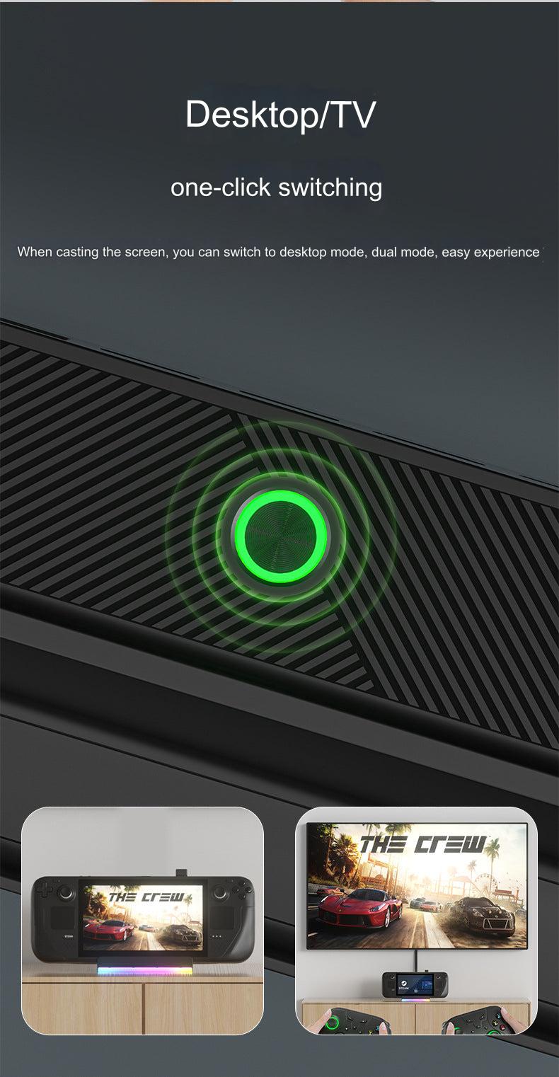 GameDeck Pro RGB Dock for Steam Deck - Anti-Slip Base with USB 3.0 Ports and 4K Output