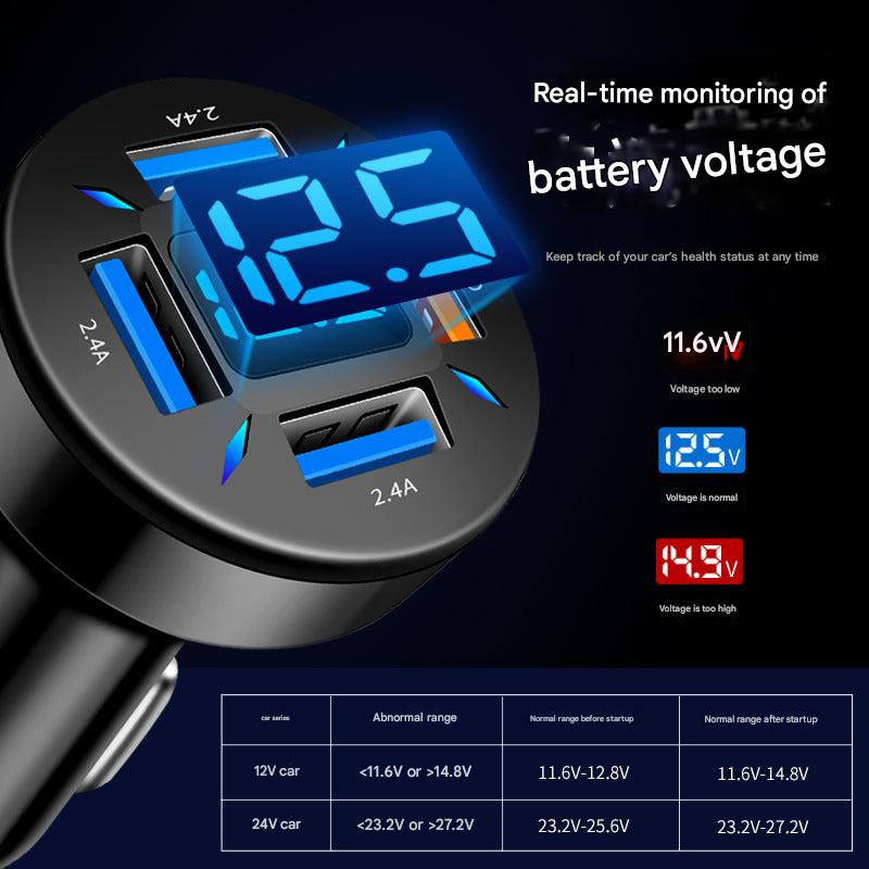 Keep all your devices powered on the go with our advanced 4-port USB car charger. Equipped with a 66W output and QC3.0 fast charging technology, this charger offers rapid charging for smartphones, tablets, and other USB devices. The integrated digital display keeps you informed of your car’s voltage and the connected devices' charging status. Its compact design easily fits into any car dashboard without taking up excess space.