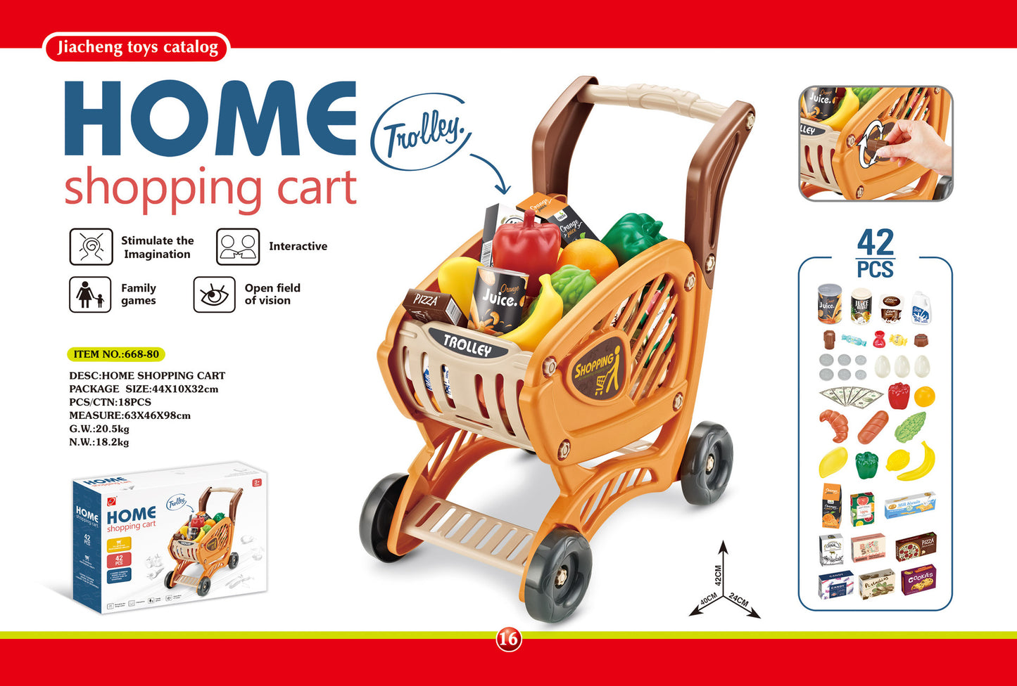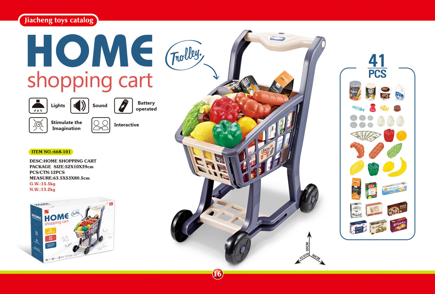 Includes Shopping cart, plastic fruits & vegetables, light and sound features