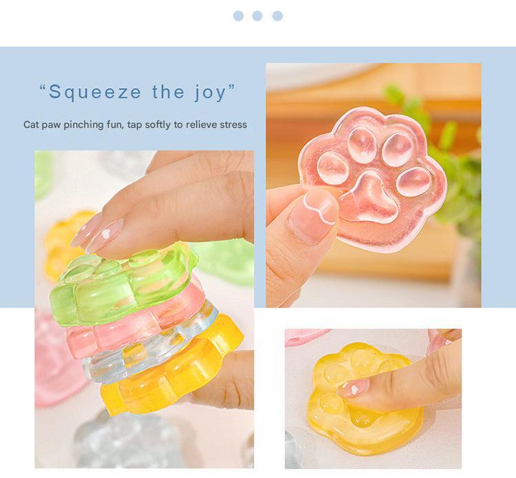 Jelly Cat Paw Stress Relief Toy for Kids and Adults - Soft, Squeezable, and Transparent Squishy with Random Colors