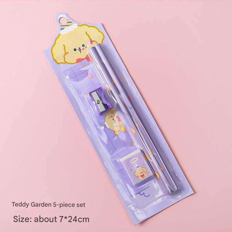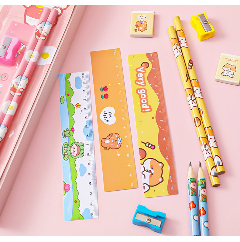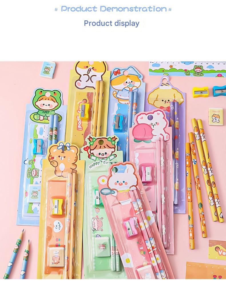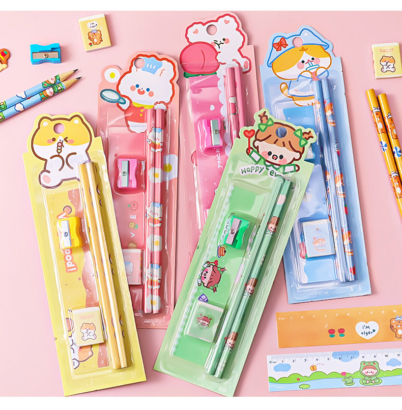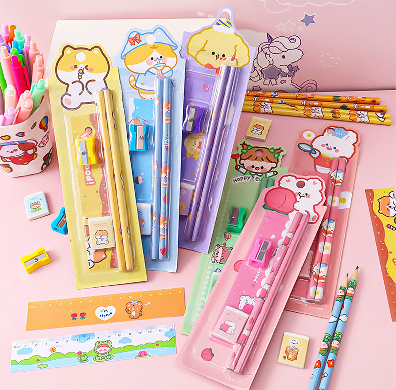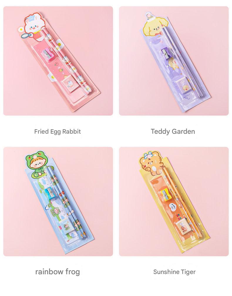 • Complete Set: Includes 2 pencils, 1 ruler, 1 eraser, and 1 sharpener - all essentials for young learners.
