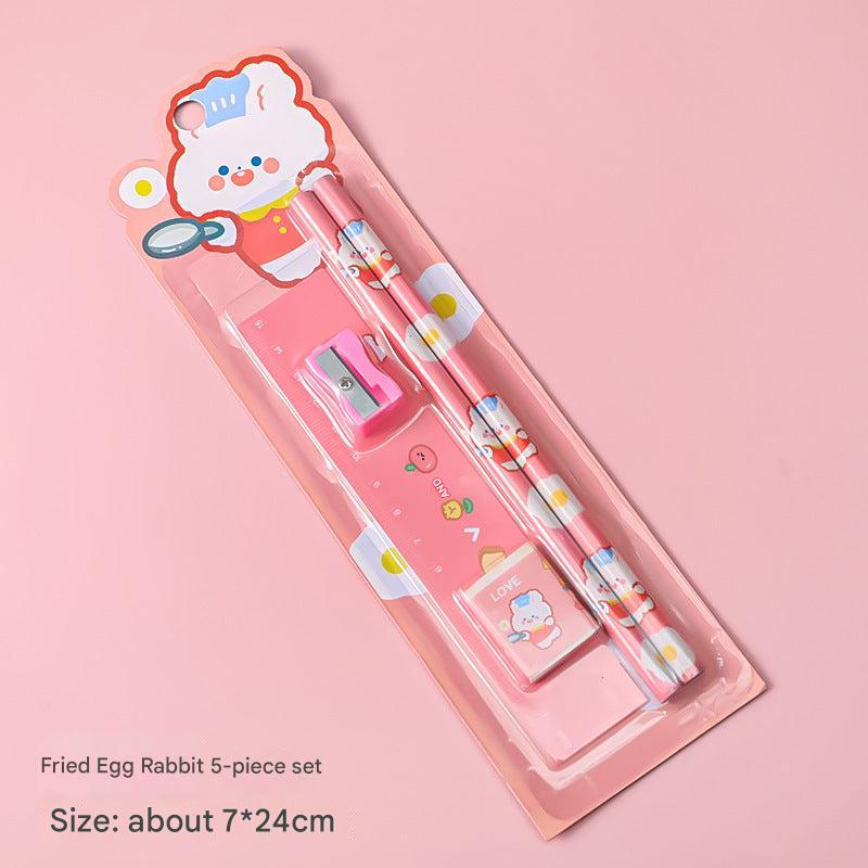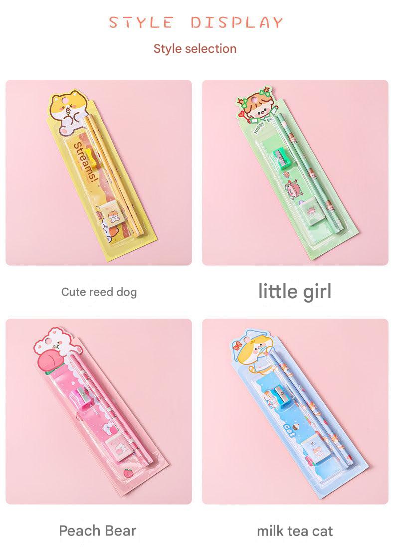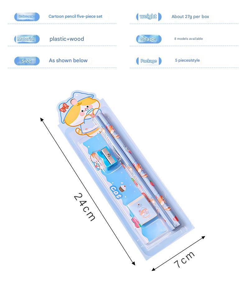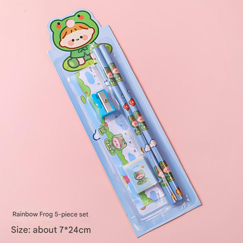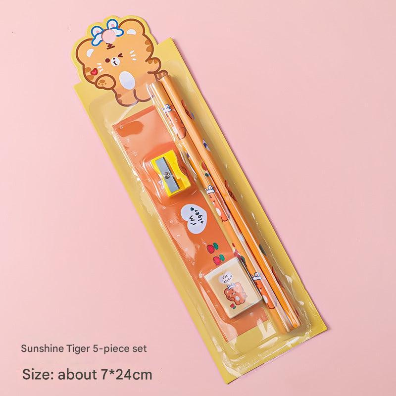 • Complete Set: Includes 2 pencils, 1 ruler, 1 eraser, and 1 sharpener - all essentials for young learners.
