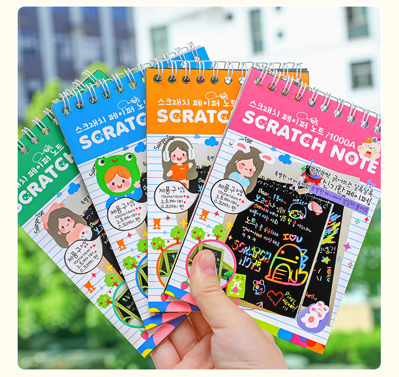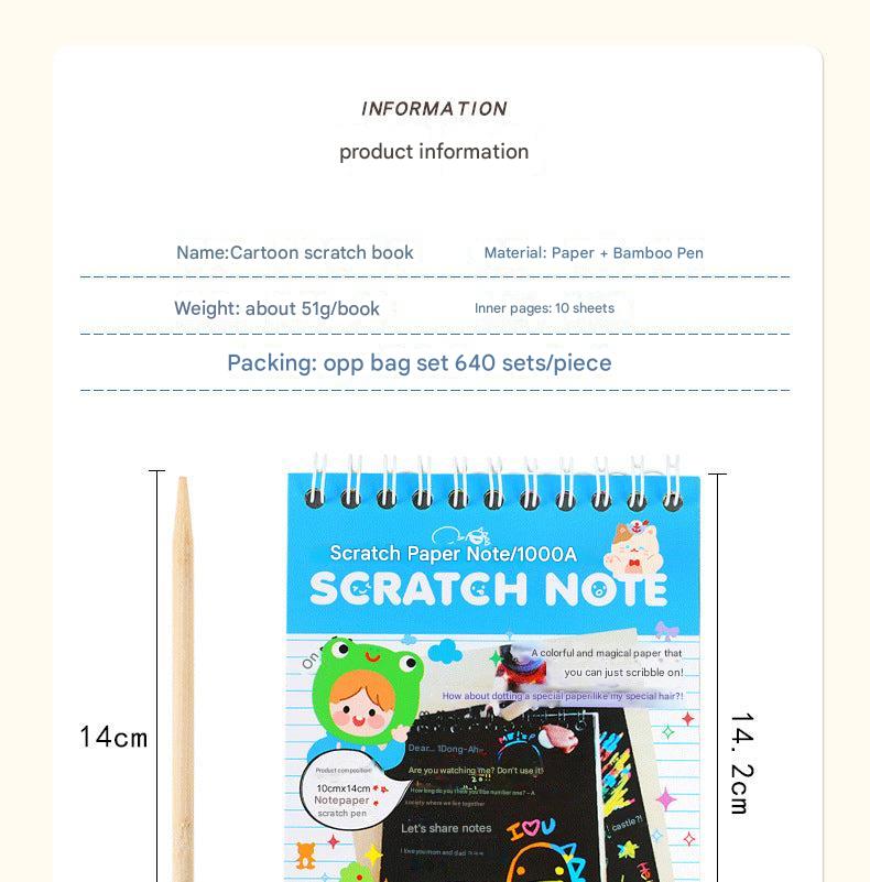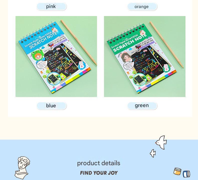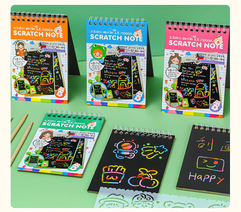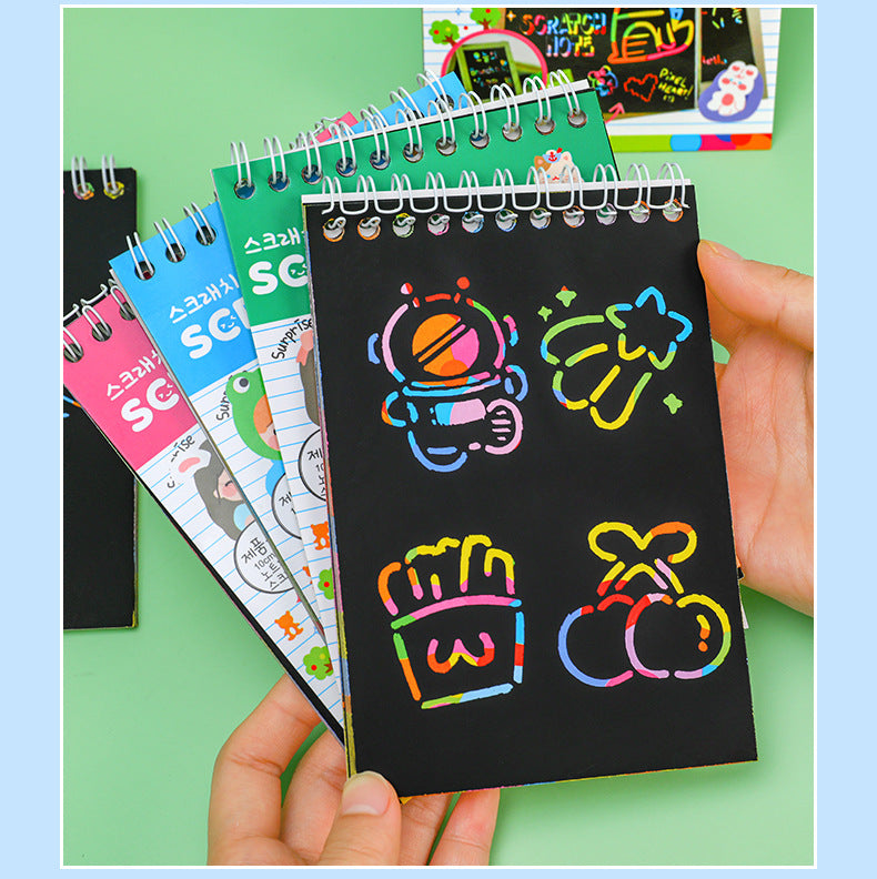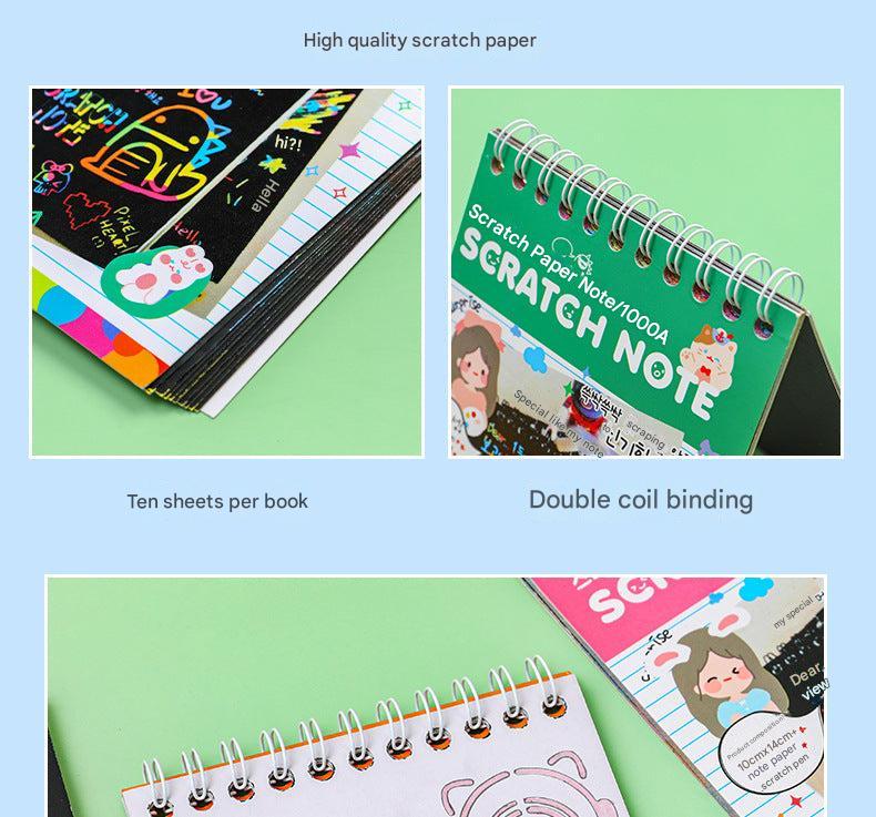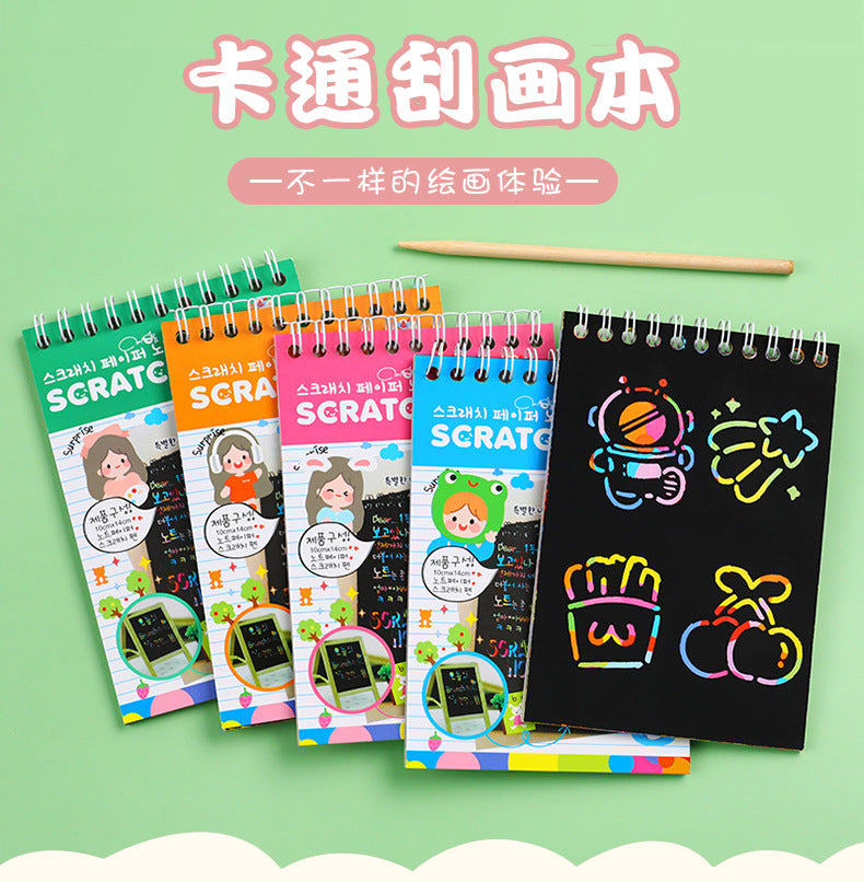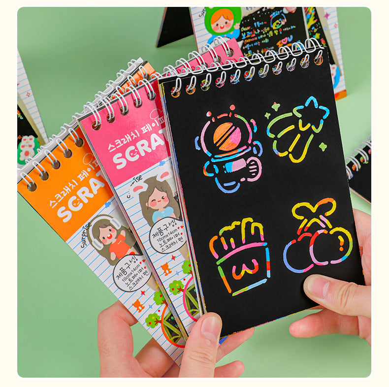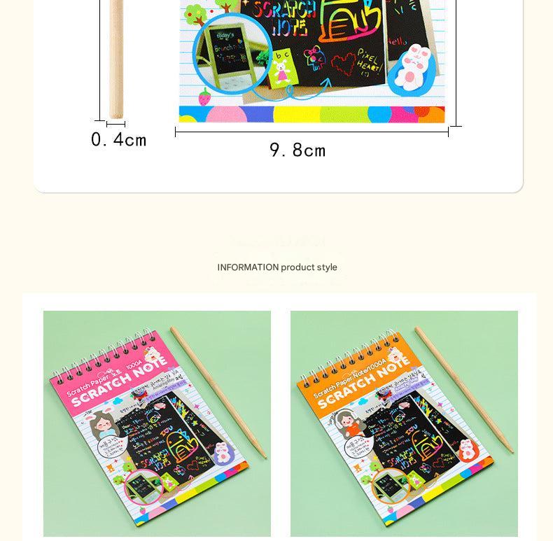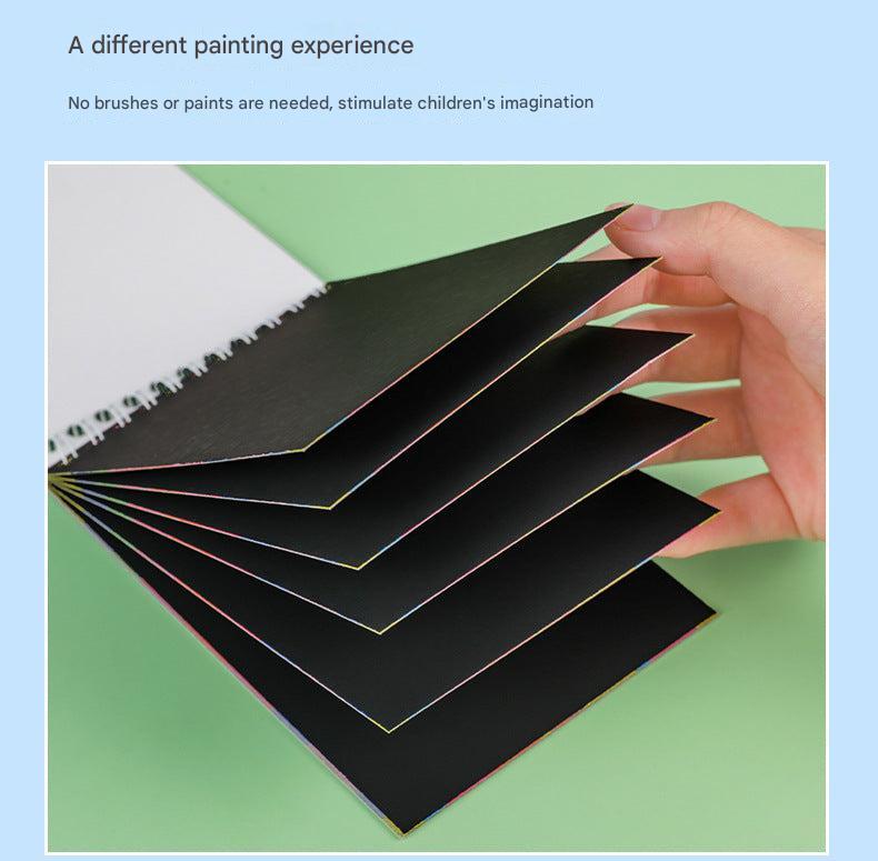 • Includes multiple color scratch papers, enhancing visual stimulation with vibrant hidden colors beneath a black matte coating.