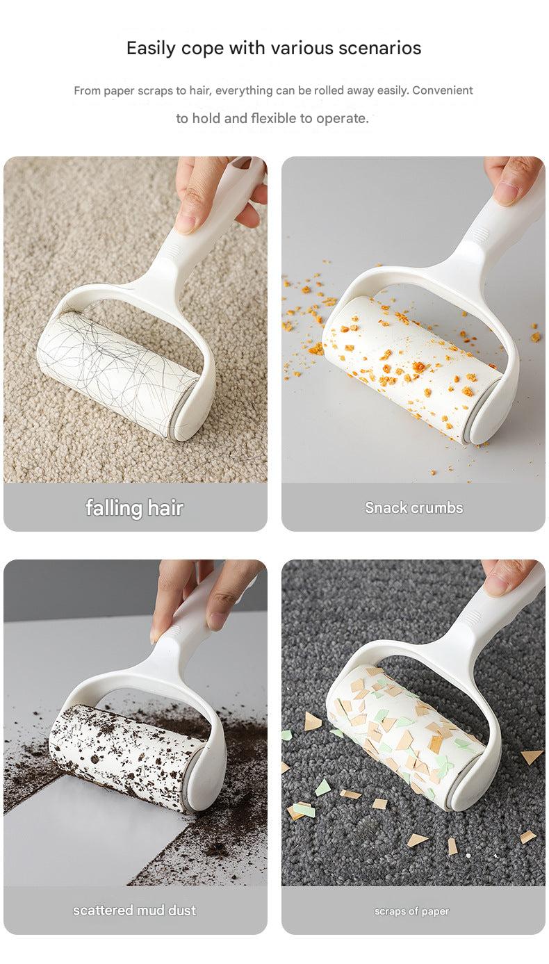 • Efficiently removes lint, hair, and debris with a high-adhesion sticky roller.