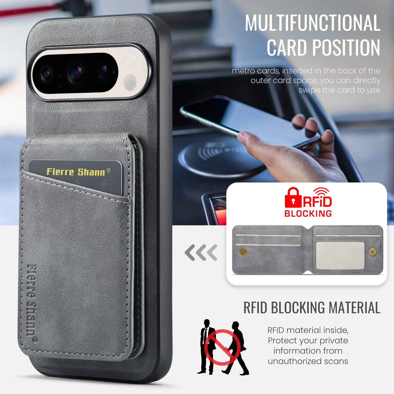 Experience the ultimate in style and functionality with our MagSafe compatible magnetic phone case, designed for Google Pixel 7/8/9A Pro and the latest iPhone models. This elegant case combines a sleek synthetic leather exterior with a robust, shockproof design to safeguard your device from drops and bumps while providing essential everyday practicality.
