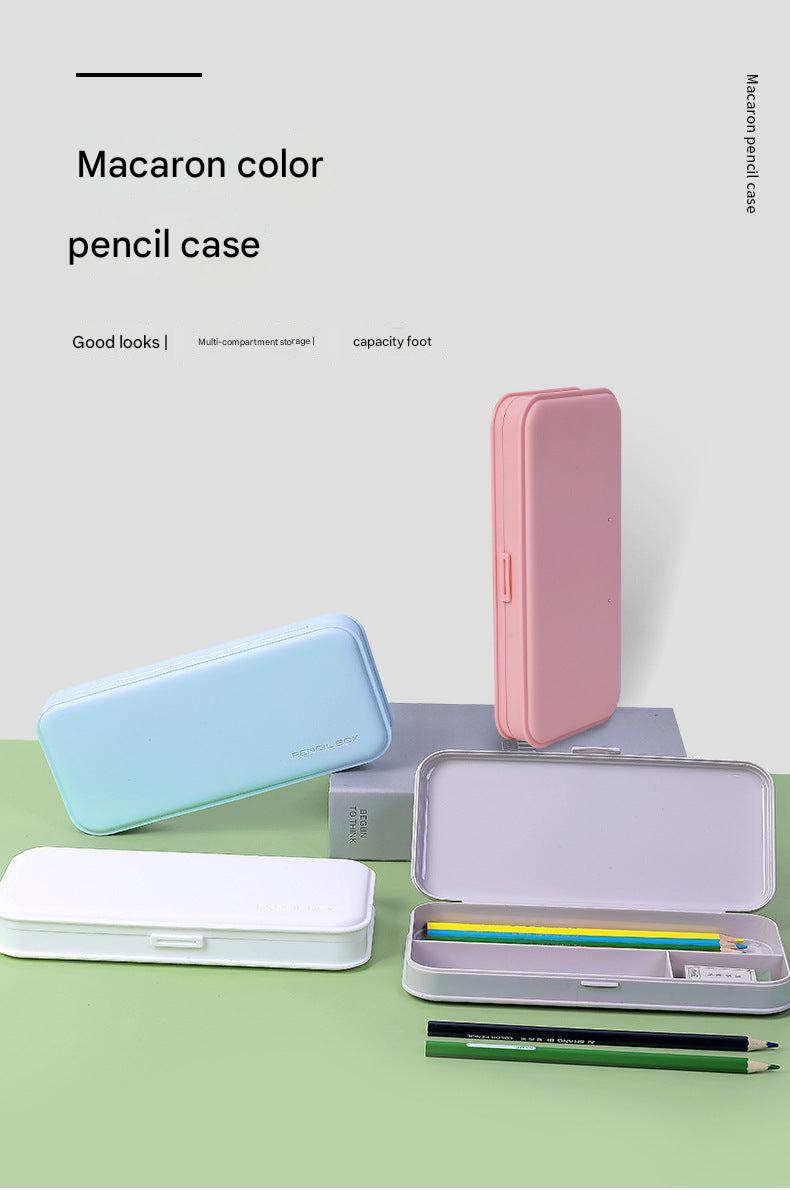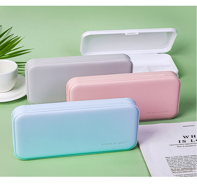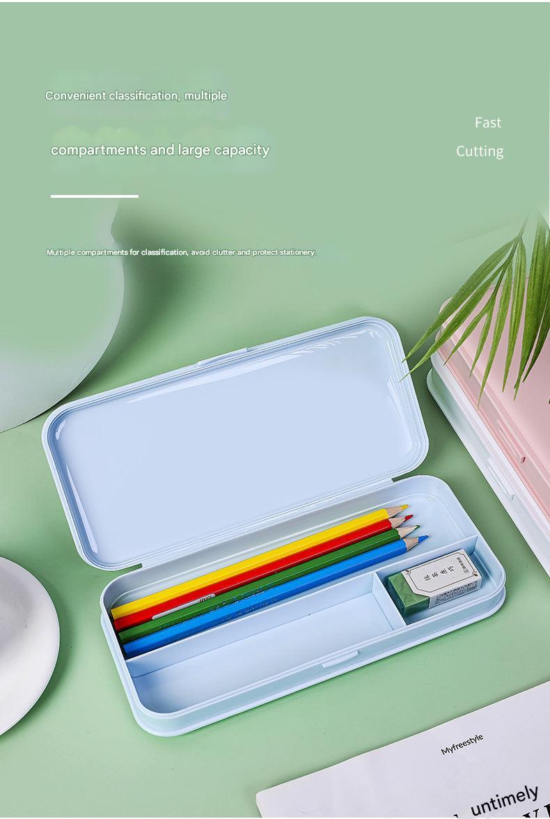 Matte Finish Kids’ Multifunctional Pencil Box - Durable PP Pencil Case with Organizational Compartments for School Supplies, Available in Blue, Pink, White, and Gray