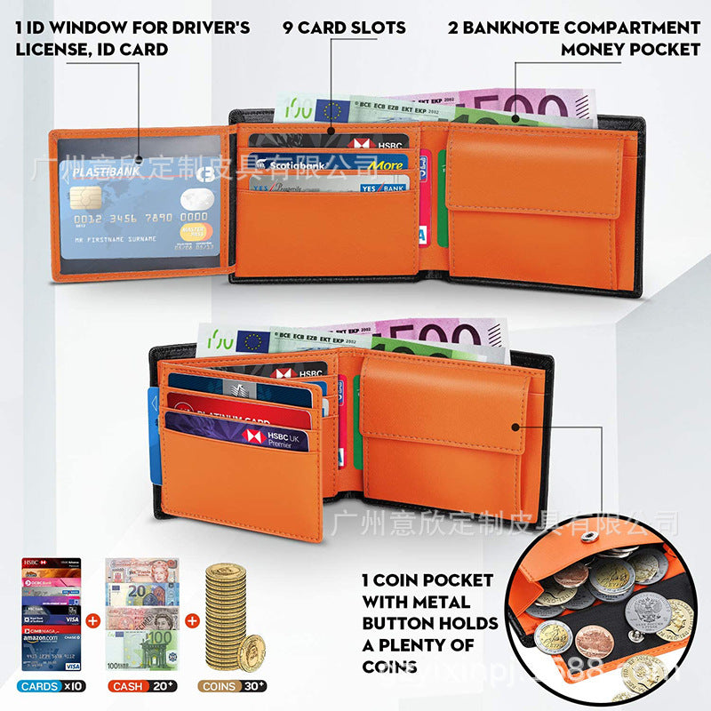 Men's Slim RFID Wallet - Genuine Cowhide Leather, Multi-Card Slots for Everyday Use