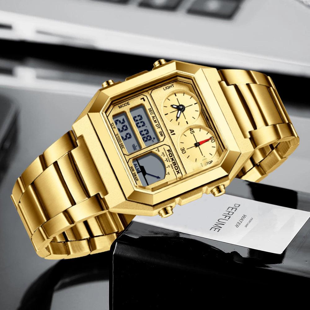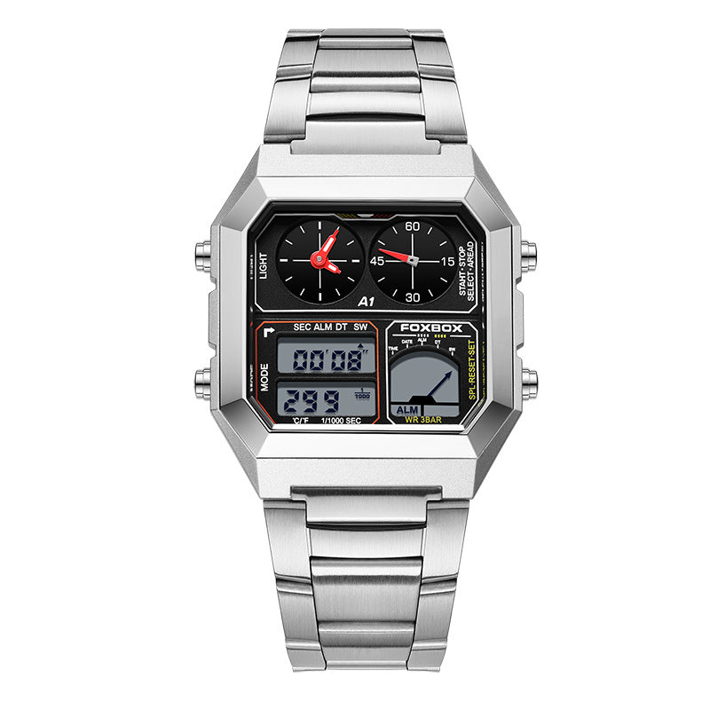 Multi-Function Waterproof Men's Sports Watch with Dual Display & Night Light