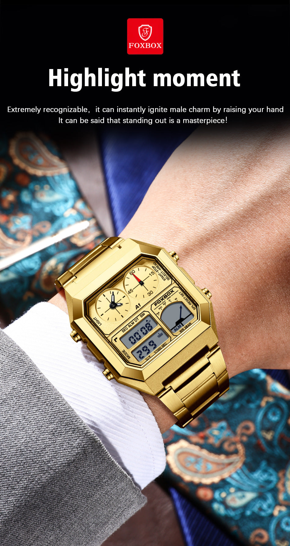 • Versatile Dual Display: Utilize both digital and analog features for easy time reading.