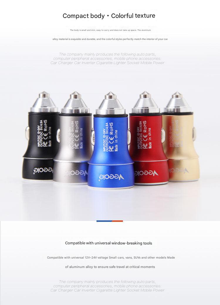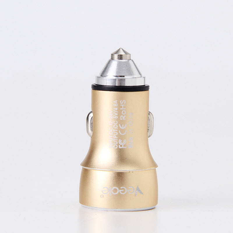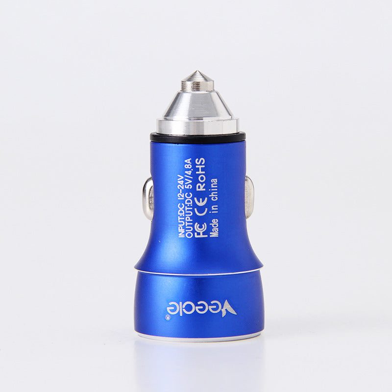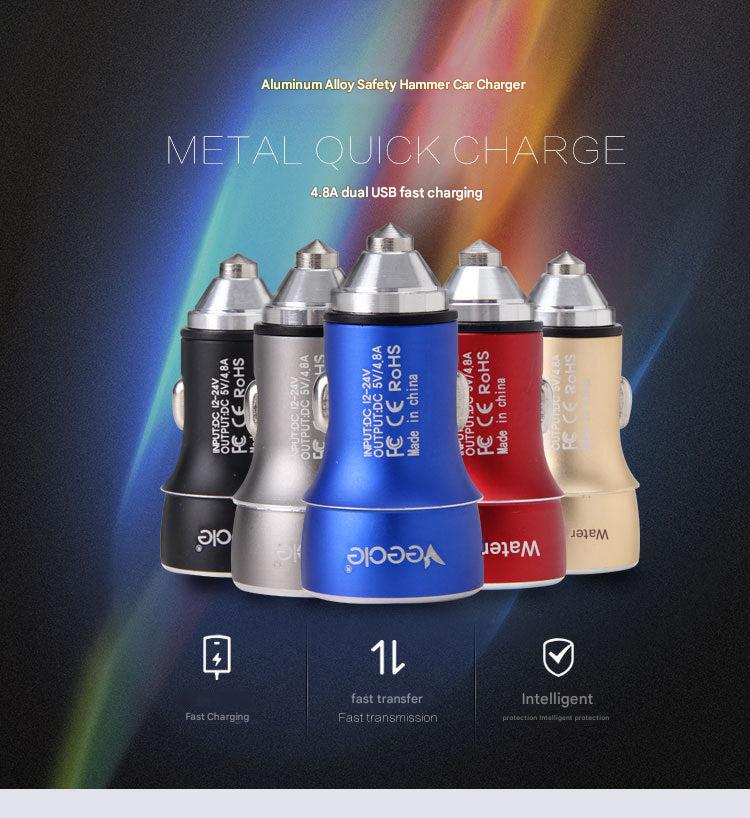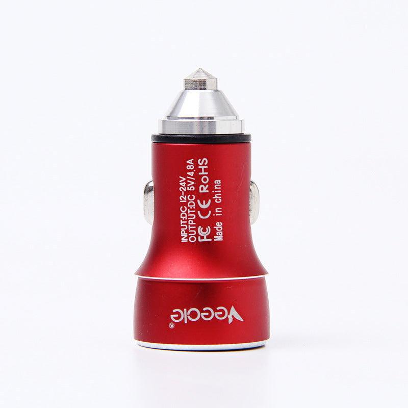 Multi-Functional Emergency Metal Safety Hammer Dual USB Car Charger with LED Light