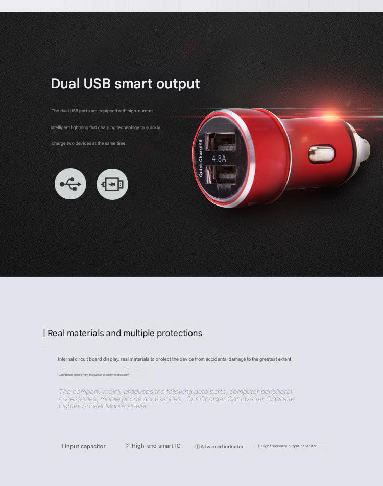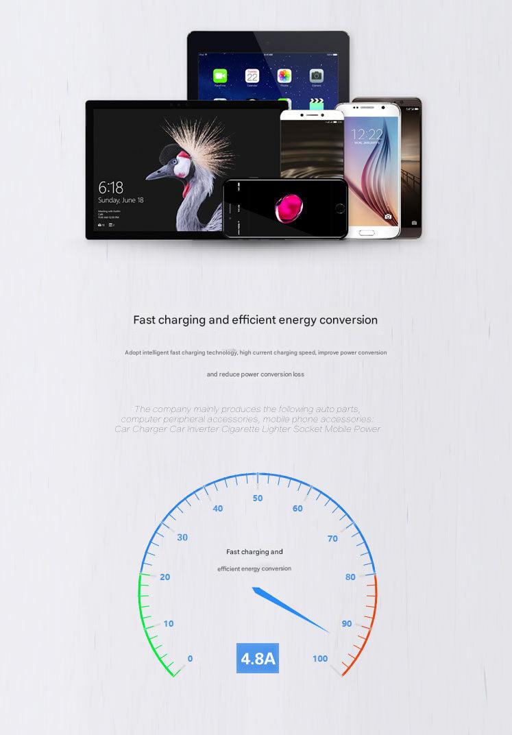 • Fast charging capability, supporting up to 2400 mA output per port.