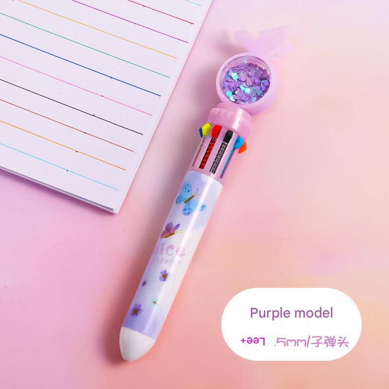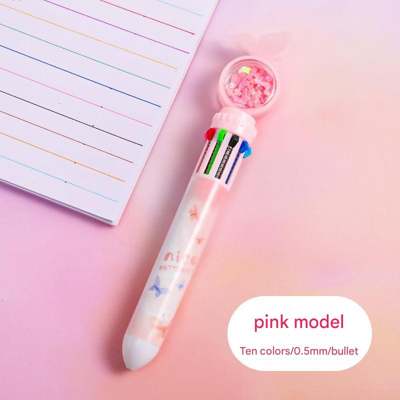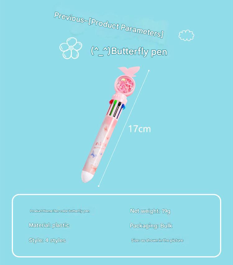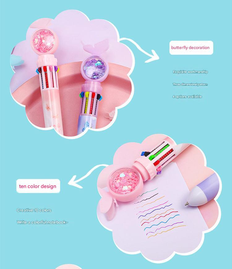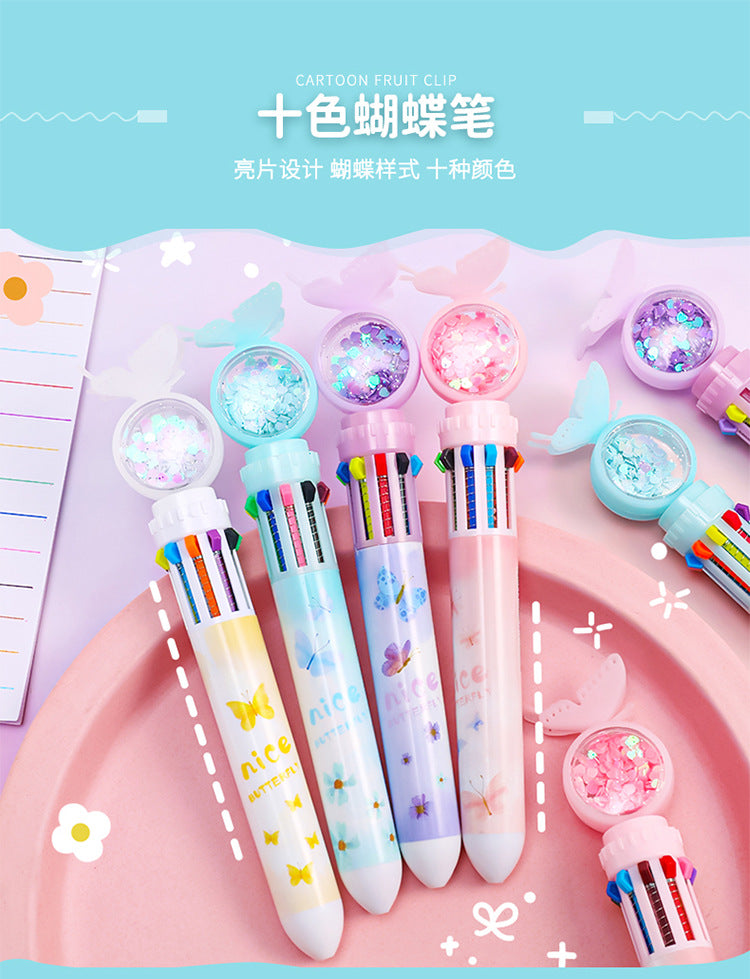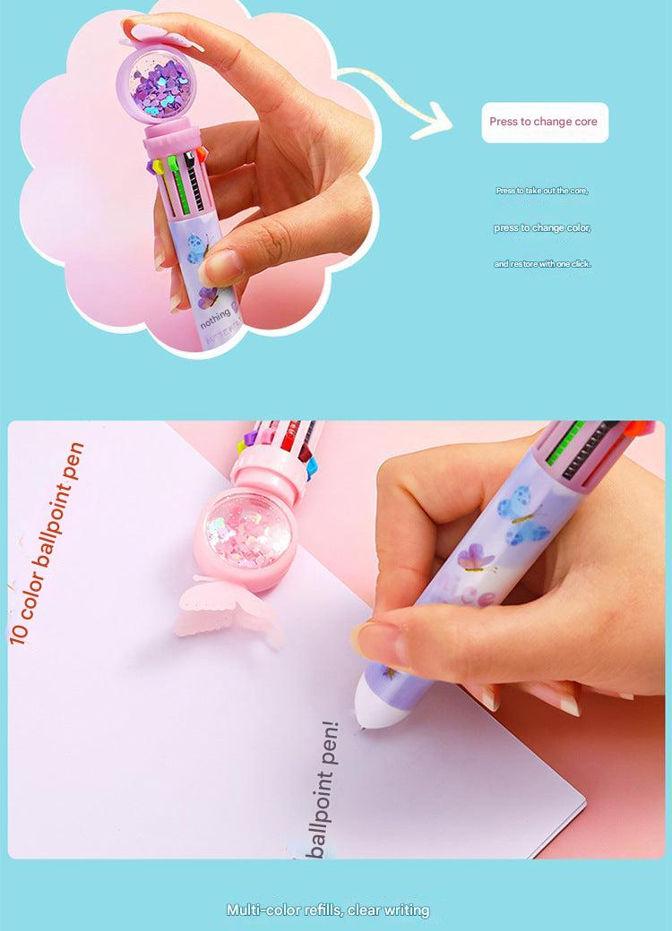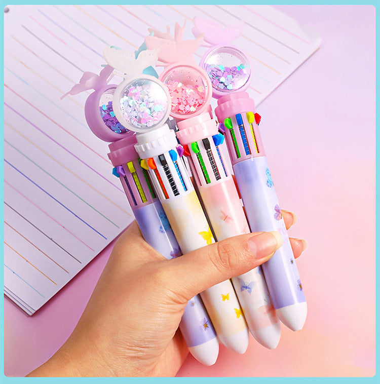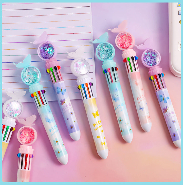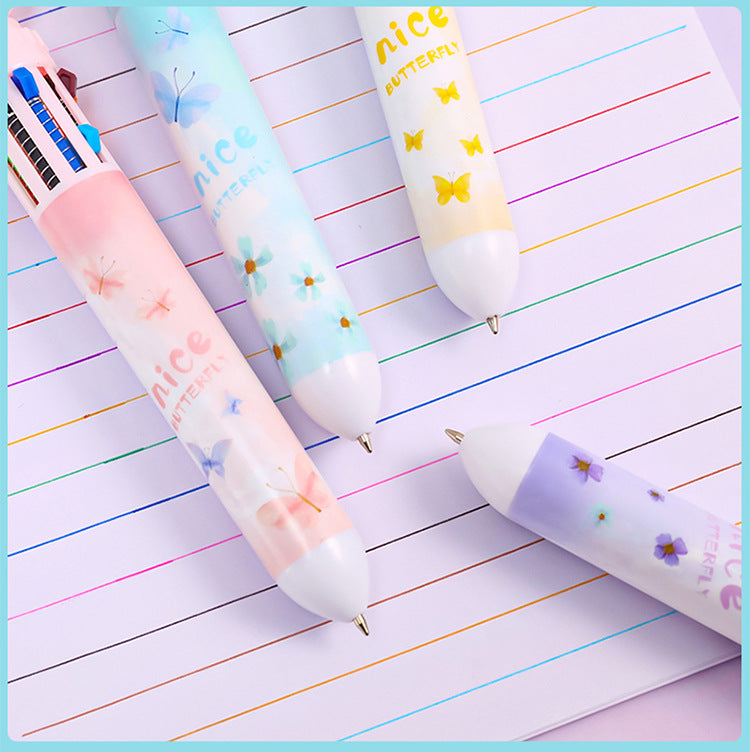 Multicolor Butterfly Ballpoint Pen for Students - Lightweight, 10-in-1 Color Options, 0.5mm Fine Point