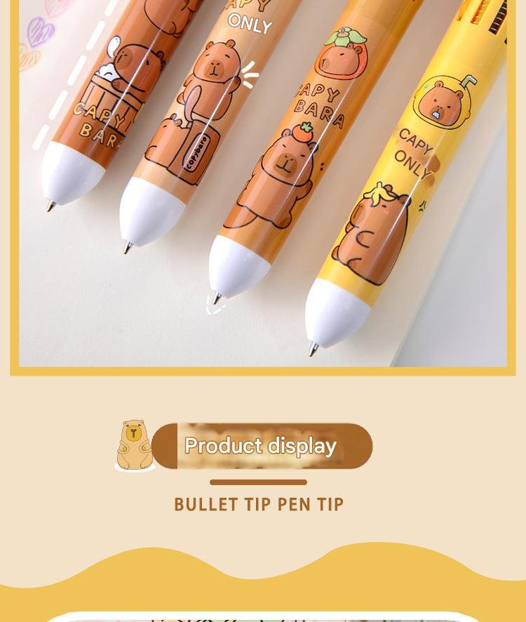 Unlock your creative potential with our Multicolor Capybara Cartoon Gel Pens, tailored for both enthusiastic young students and creative artists. Each pen in this 10-pack features a unique, fun Capybara cartoon design, making writing and drawing sessions more enjoyable. The high-quality gel ink ensures smooth lines without skips or smudges, suitable for everything from notetaking to intricate art projects. The simple click mechanism keeps the pens from drying out and makes them easy to use without worrying about losing pen caps. These colorful, lightweight pens are perfect for slipping into a backpack or art kit, making them ideal for school, home, or travel.