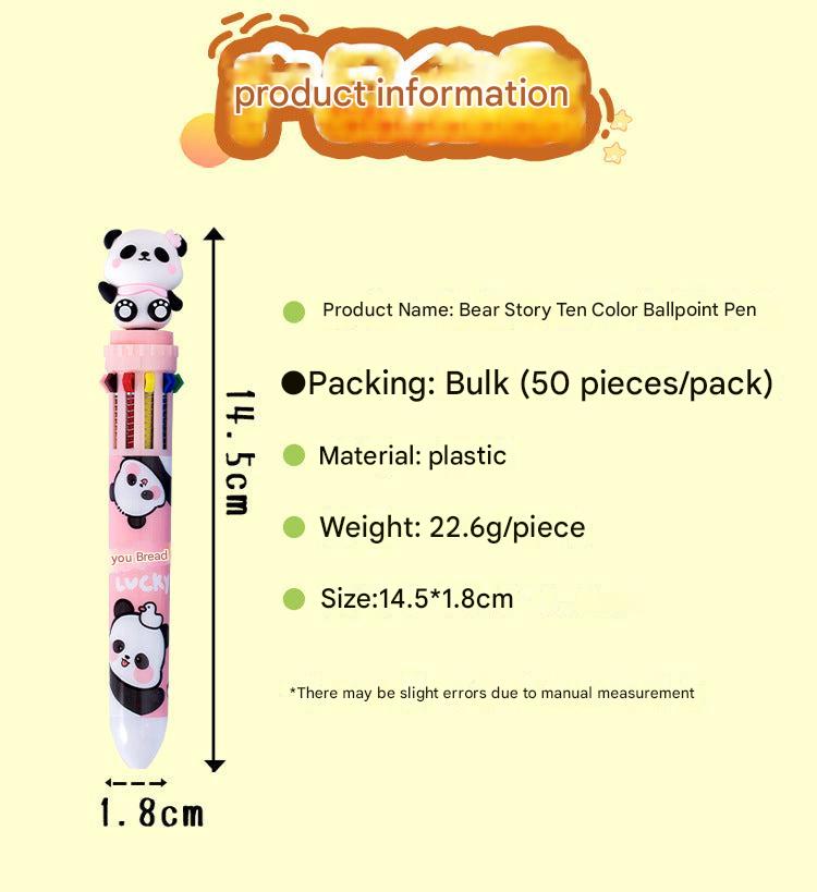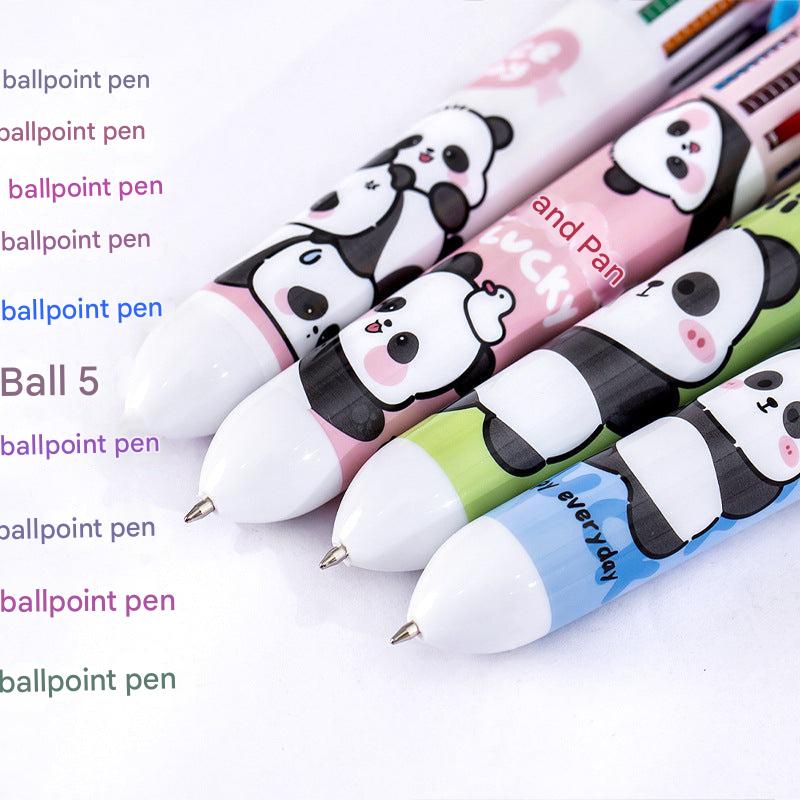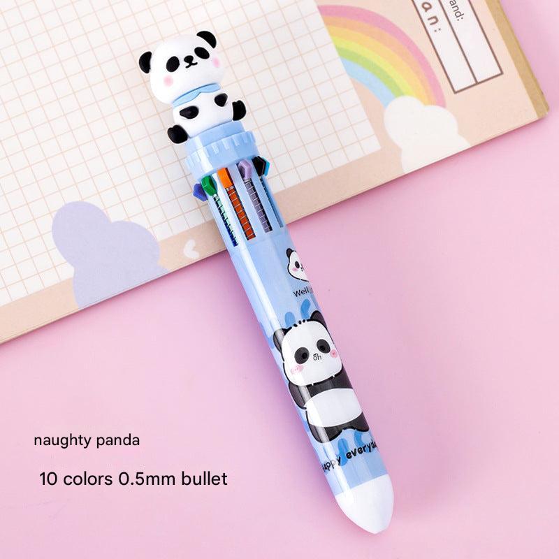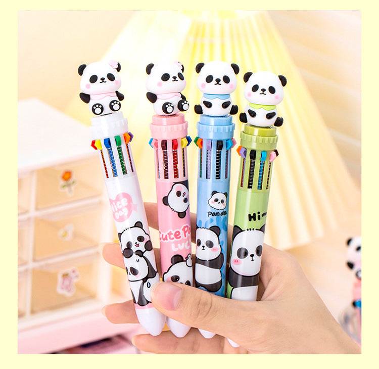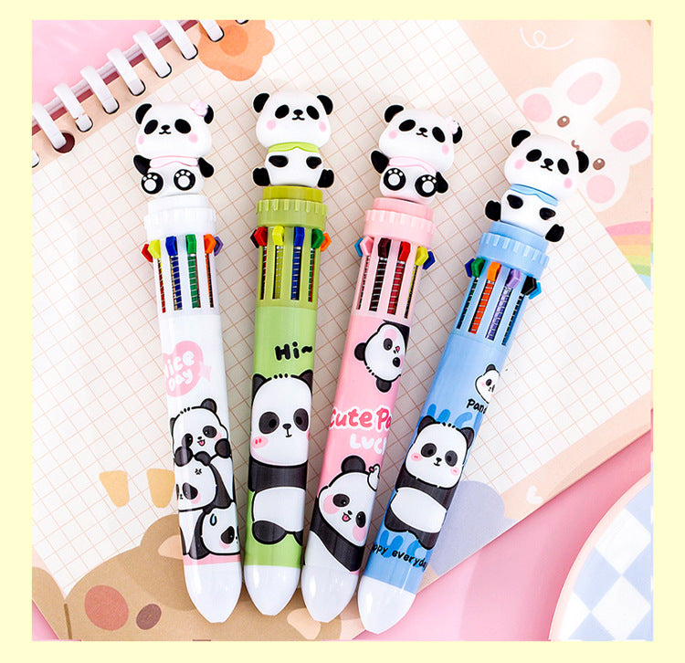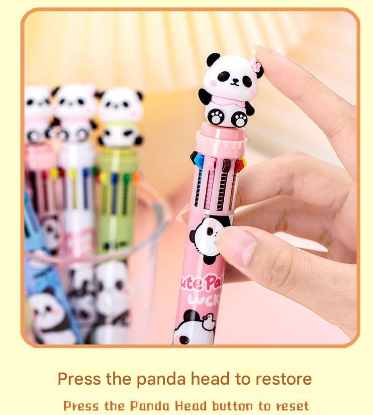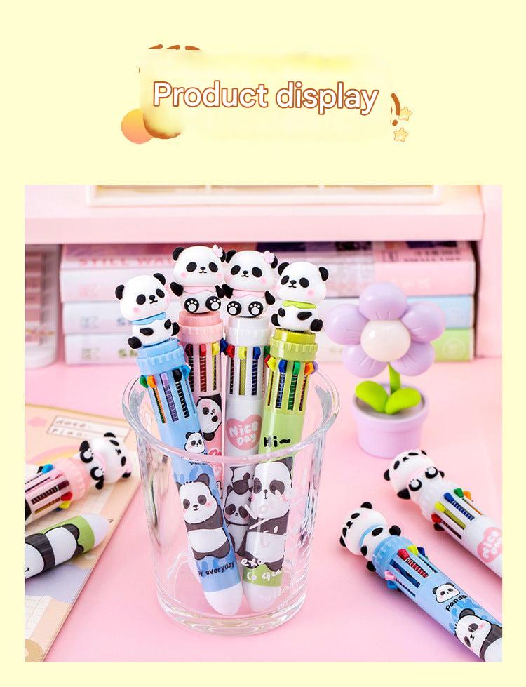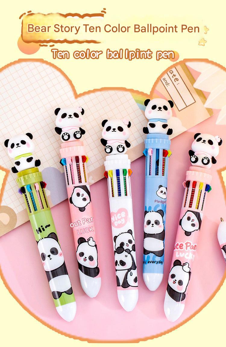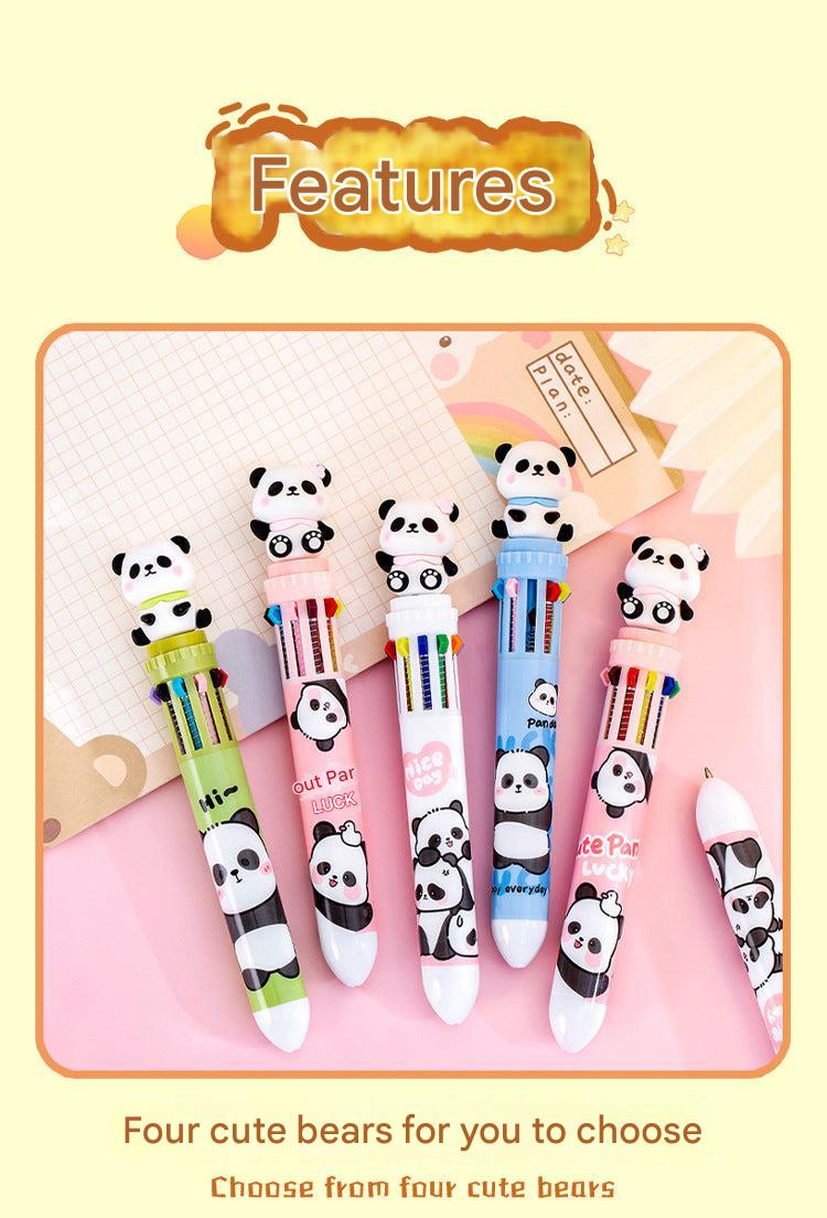 Multicolor Panda-Themed Retractable Ballpoint Pen, 10-in-1 Colorful Journaling Pen for Students