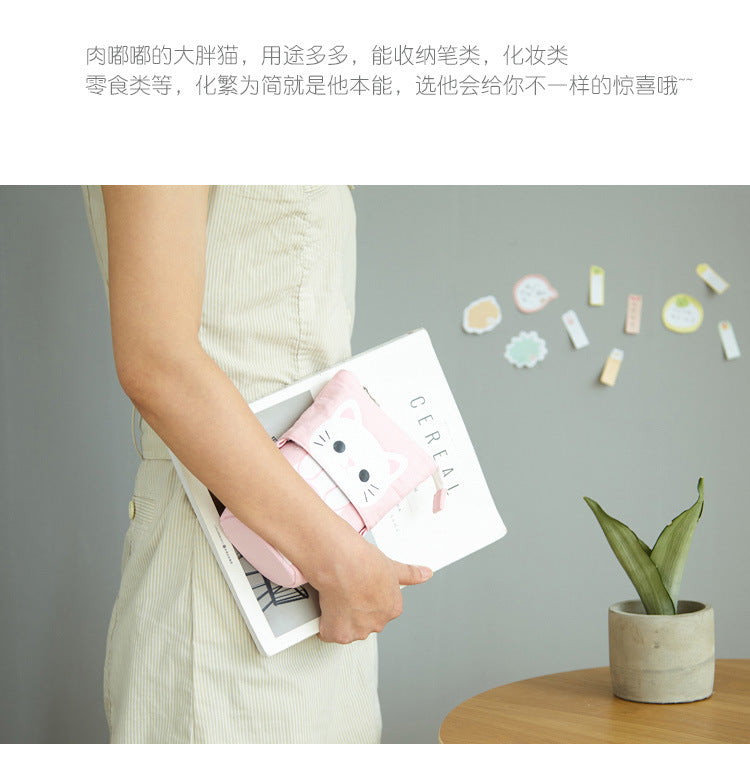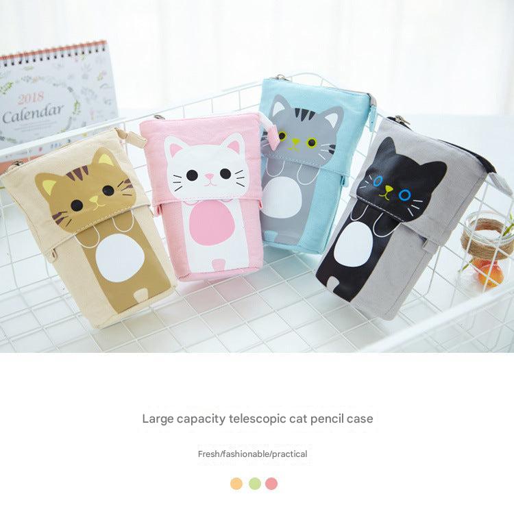 Multifunctional Canvas Pencil Case in Coffee Cat design