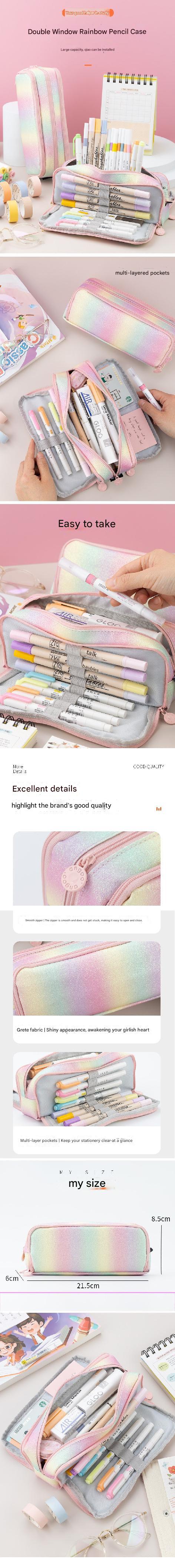 Upgrade your academic gear with our Multifunctional Large Capacity Pencil Case, designed for active students desiring both style and functionality. This pencil case boasts a roomy interior that can accommodate a substantial collection of writing instruments and school accessories, ensuring that everything needed for success at school is at your fingertips. Its durable leather construction withstands regular use, making it a reliable choice through the school years. With a captivating rainbow design and a practical double-layer opening, it strikes the perfect balance between fashion and efficiency. Perfect for students of elementary to high school, this pencil case makes organizing fun and easy!