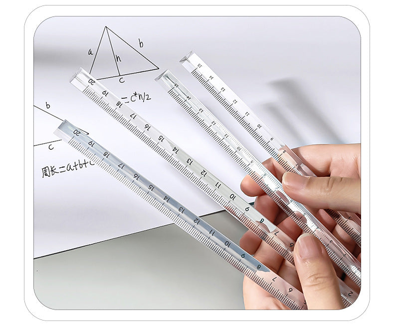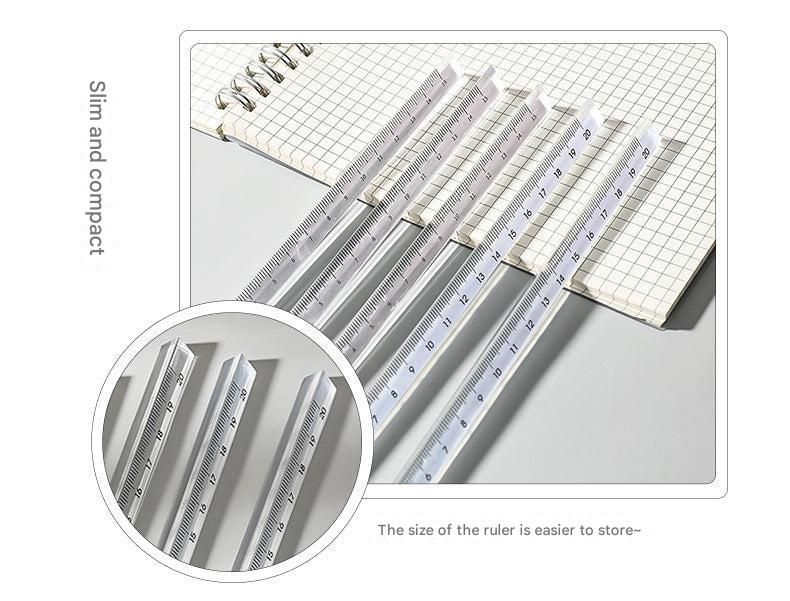Designed to deliver precision and versatility, our 20cm Triangular Ruler is an indispensable tool for students, architects, and engineers alike. Made from durable, clear acrylic, it offers visibility and precision for any drawing or measurement task. Each side of the triangular design features a different scale, enabling users to adeptly manage various projects. Whether used for complex architectural drafts or simple classroom tasks, this ruler proves essential. Its portability and customization options also make it a perfect choice for personal or corporate gifts.