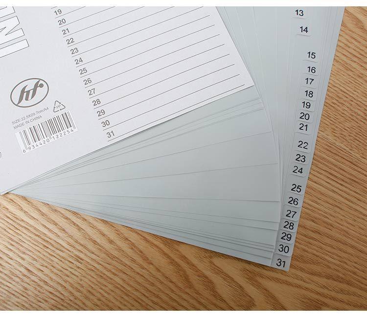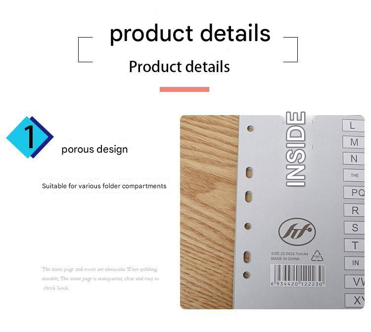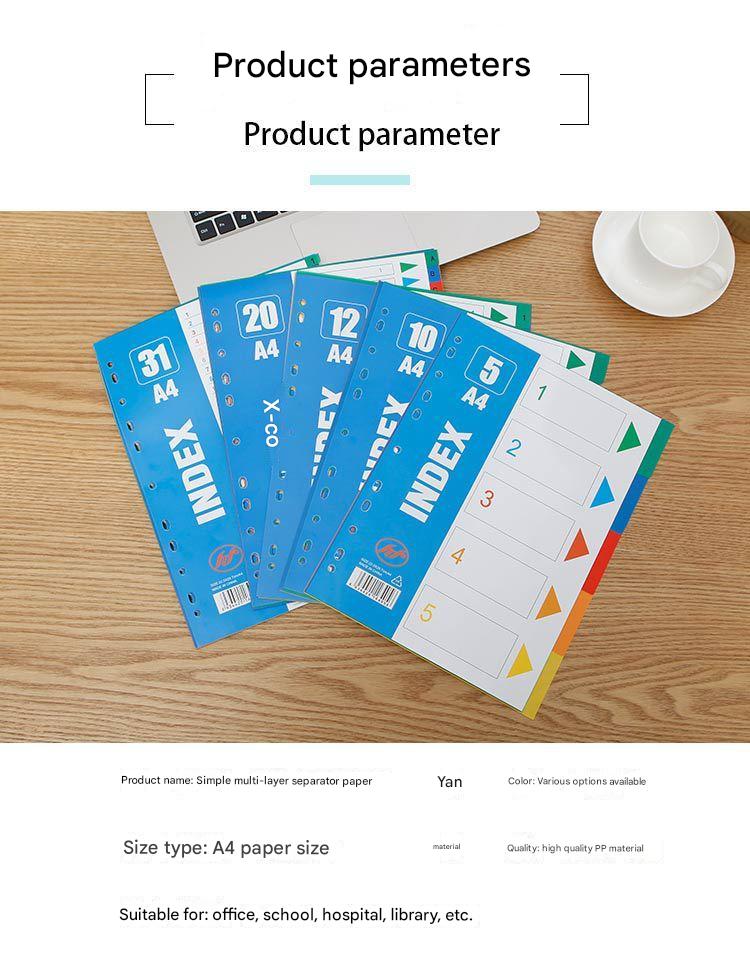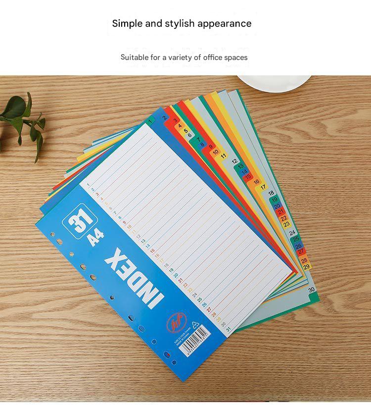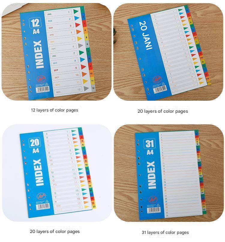 Enhance the functionality and appearance of your information binder with our Premium A4 Colorful Divider Tabs. Each set contains 15 robust polypropylene pages, designed to withstand daily use without tearing or deteriorating. The 11-hole punches provide universal fit, making them suitable for most A4 binders, ensuring your papers stay organized and accessible. Available in a variety of colors and designs, these dividers not only help organize documents but also add a touch of brightness to your workspace. Ideal for corporate environments, exhibitions, and promotions, these tabs can also be customized with your company's logo. Whether you're organizing presentations, reports, or resource materials, our divider tabs make finding your documents faster and easier than ever before.
