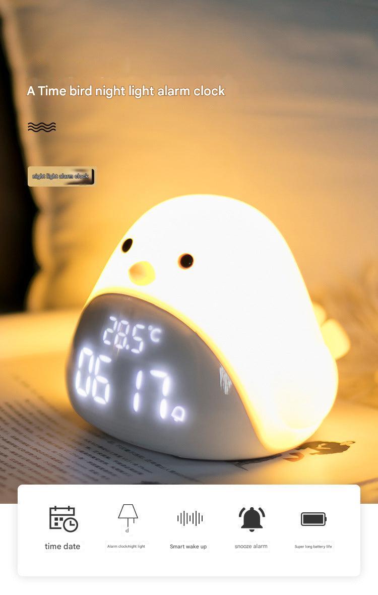 Smart Lazy Time Bird Alarm Clock LED Night Light Digital Clock for Kids, Creative Snooze Feature