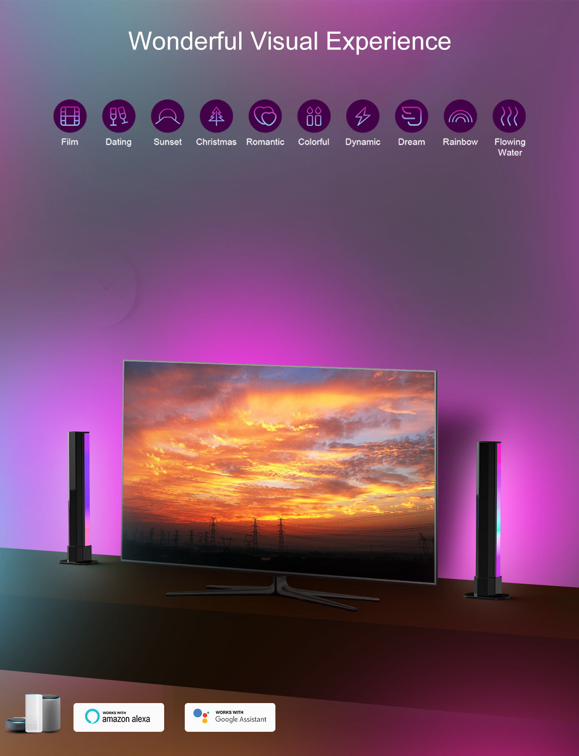Smart LED Ambient Desk Lamp with Tuya WiFi, Bluetooth, and Music Sync for Gaming, TV setups - Voice and App Controlled
