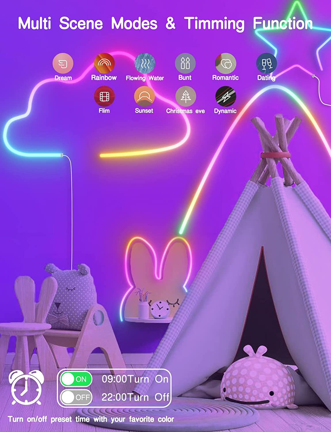 Smart LED Neon Light Strip with WiFi & Bluetooth Connectivity, RGBIC Neon Flex Tape for Home Decoration and Ambiance Lighting, Compatible with App Control