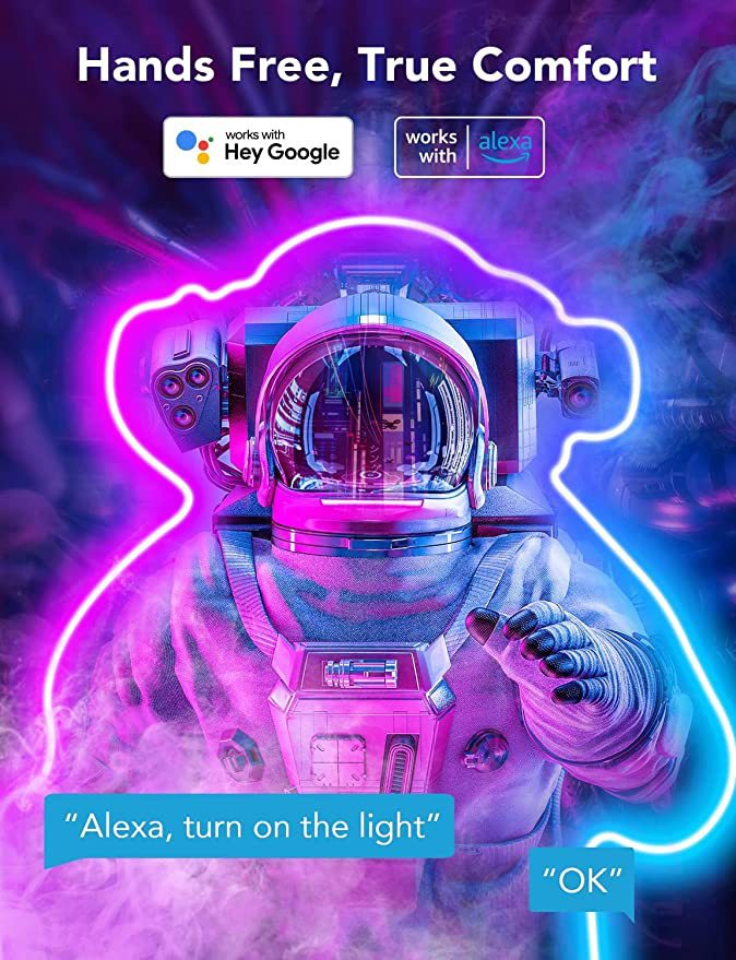 • Flexible Installation & Setup: The LED strip features a flexible design for easy installation around corners and under furniture, making it ideal for a variety of indoor settings.