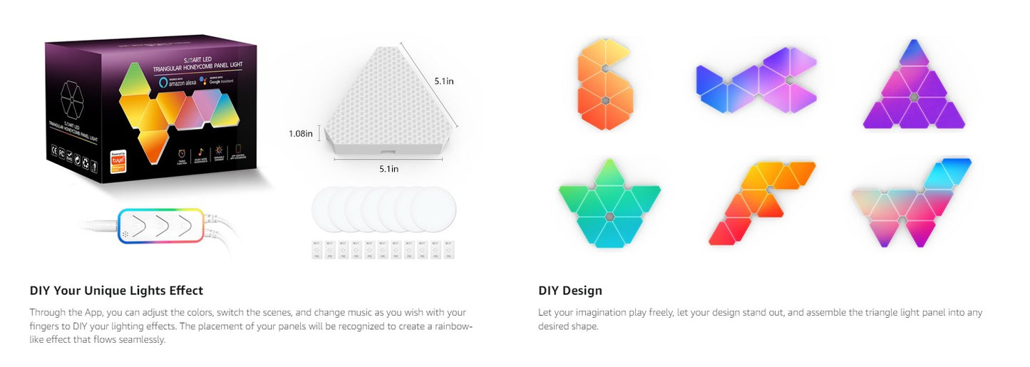Smart LED Triangle Lights Set - Sync with Music & Games, RGB Ambient Mood Lighting Kit with App Control