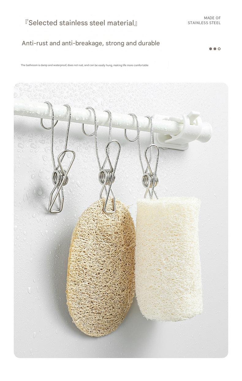Stainless Steel Multi-Functional Hooks for Bathroom Storage - Windproof Clothes Drying Clips