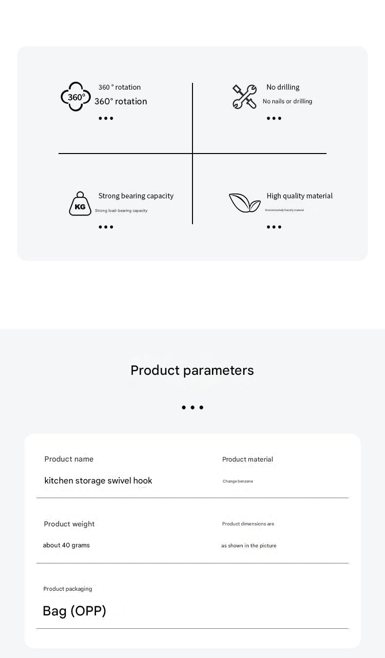 • Maximize kitchen and bathroom efficiency with rotating hooks designed to hold various items securely, up to 2kg.