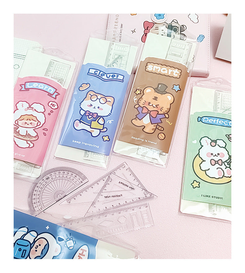 This Student Drawing Kit is designed to meet the needs of both beginner and advanced young artists. The kit includes a precision 20cm ruler, an isosceles triangle, an equilateral triangle, and an angle measurer, all made from high-quality, lightweight plastic to withstand daily use. Assorted eye-catching designs stimulate creativity and make learning and drawing exciting. Opt for custom logos to add a personal touch or brand it for school events and merchandise. It's a versatile, practical set that also serves as a thoughtful gift for a wide variety of occasions and celebrations.