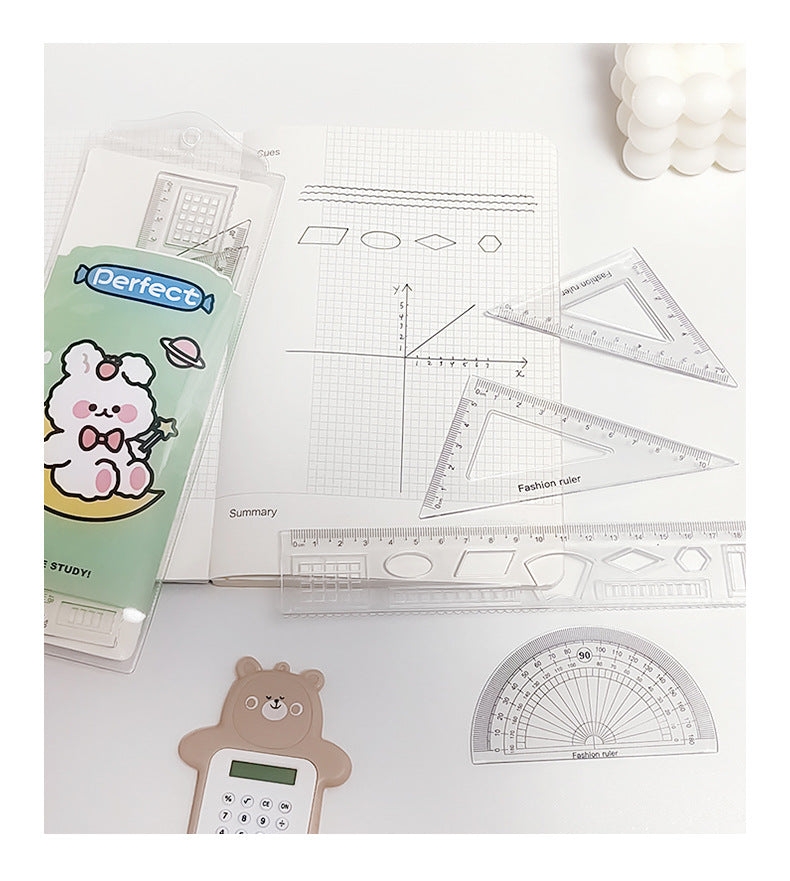 • Comprehensive set includes a 20cm ruler, two types of adjustable triangles, and a protractor perfect for students and young artists.