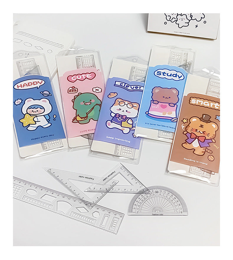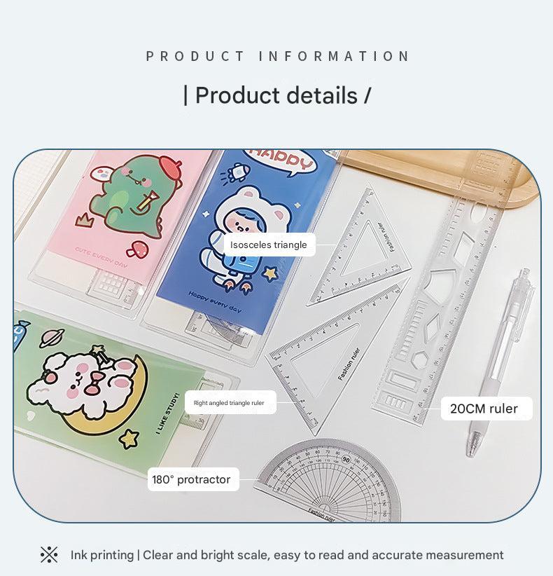 Kit Includes 20cm ruler, two types of triangles, protractor