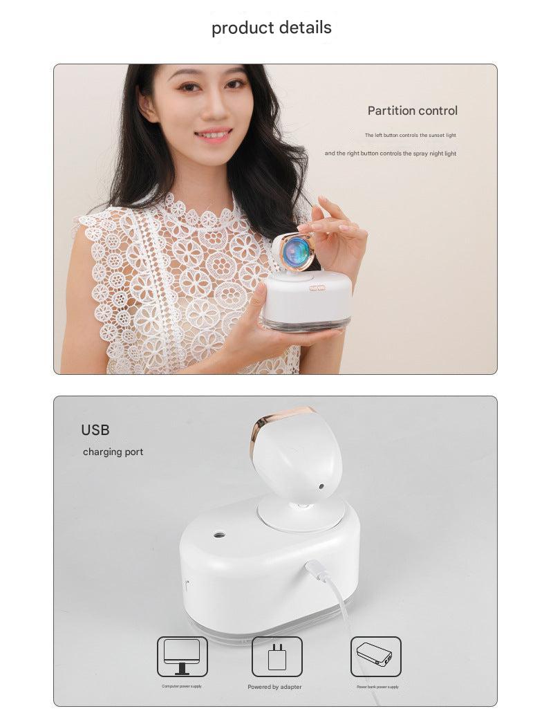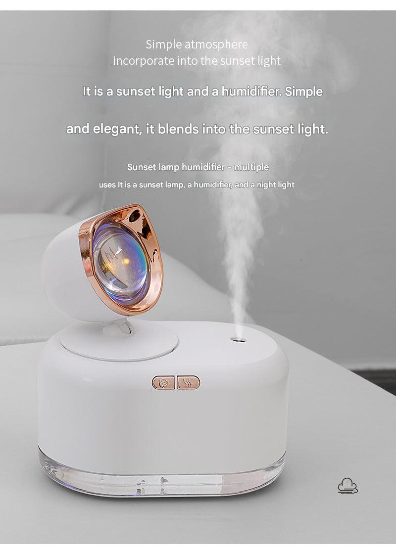 Sunset Lamp Humidifier with LED Projection Light and USB Charging, Compact Tabletop Ultrasonic Mini Air Humidifier for Home Use