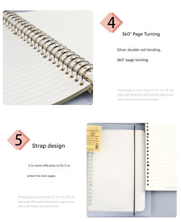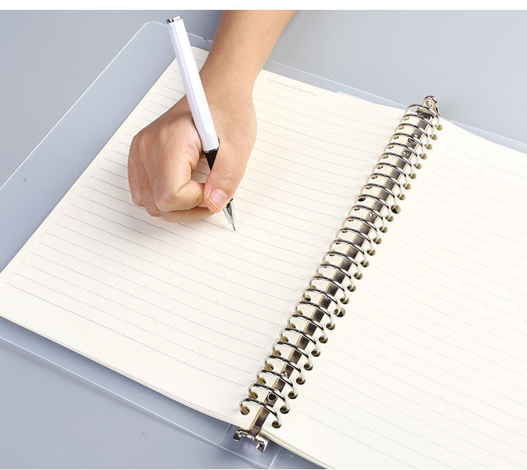 Enhance your note-taking and organizational skills with our A5 Binder Notebook, crafted for both students and professionals. The notebook features a 26-ring binder system that allows for easy customization of pages—add or remove them as needed. The high-quality paper is specifically chosen for smooth writing and minimal bleed, ideal for pens, pencils, and markers. With its compact A5 size, it's easy to carry in any bag, ensuring you have your notes handy wherever you go. Whether it's for daily journaling, to-do lists, meeting notes, or academic work, this notebook adapts to your needs. Available in a selection of modern colors, it also serves as a perfect gift for various occasions like birthdays, school commencements, or office promotions.