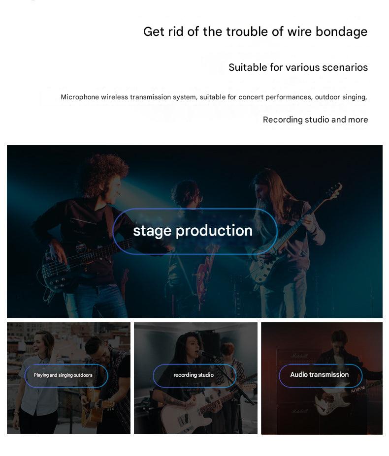 • Enjoy hassle-free sound quality with our wireless microphone system designed specifically for instruments, ensuring a crisp and clear audio output.